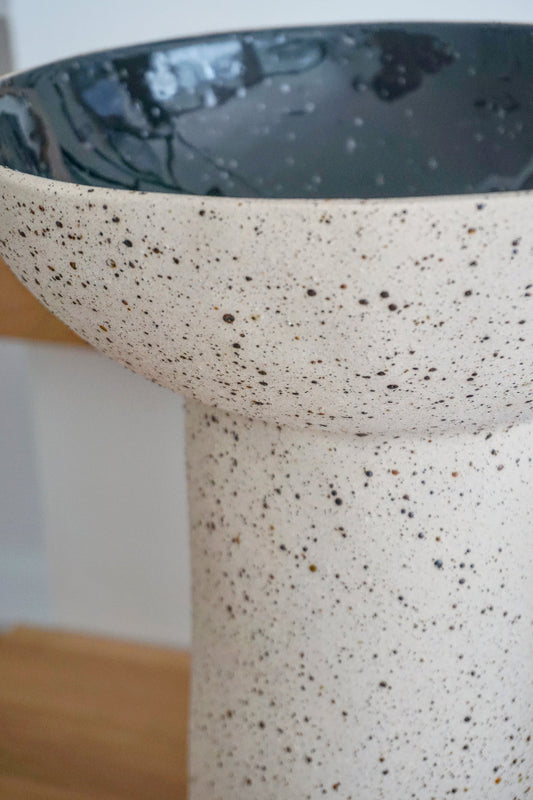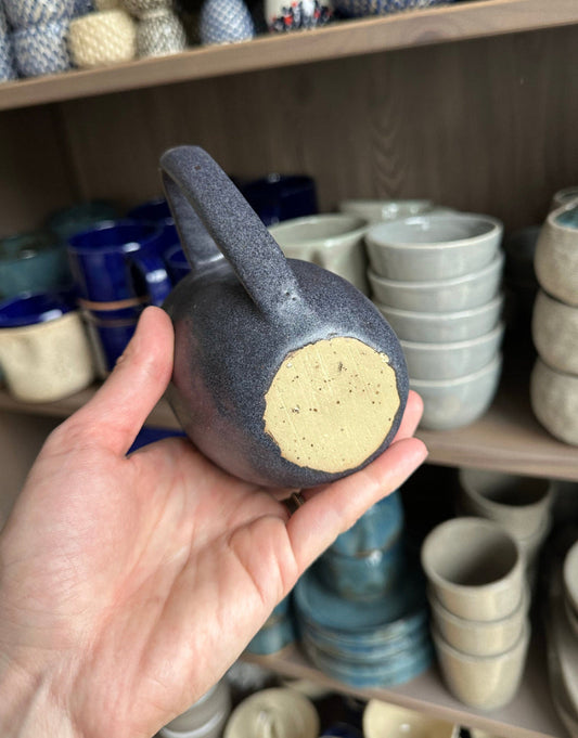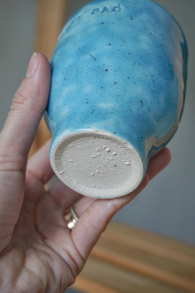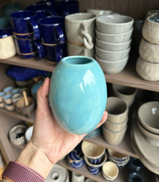 Aukšta rankomis lipdyta vaza su mažu įtrūkimu