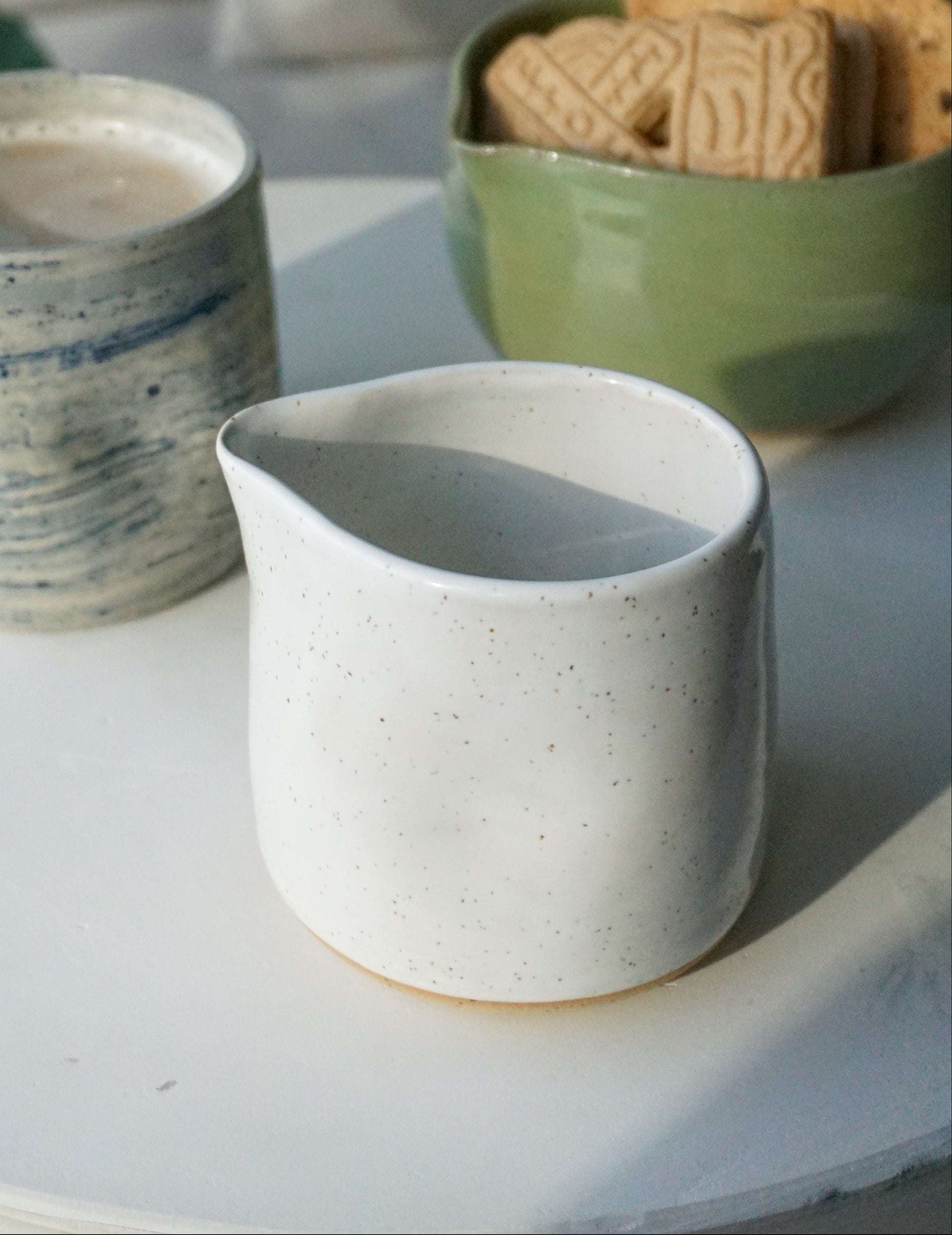 Rankomis žiestas indelis, puikiai tinkantis pienui, grietinėlei ar padažui. Iš aukšto degimo molio pagamintas gaminys yra patvarus ir tinkamas plauti indaplovėje.