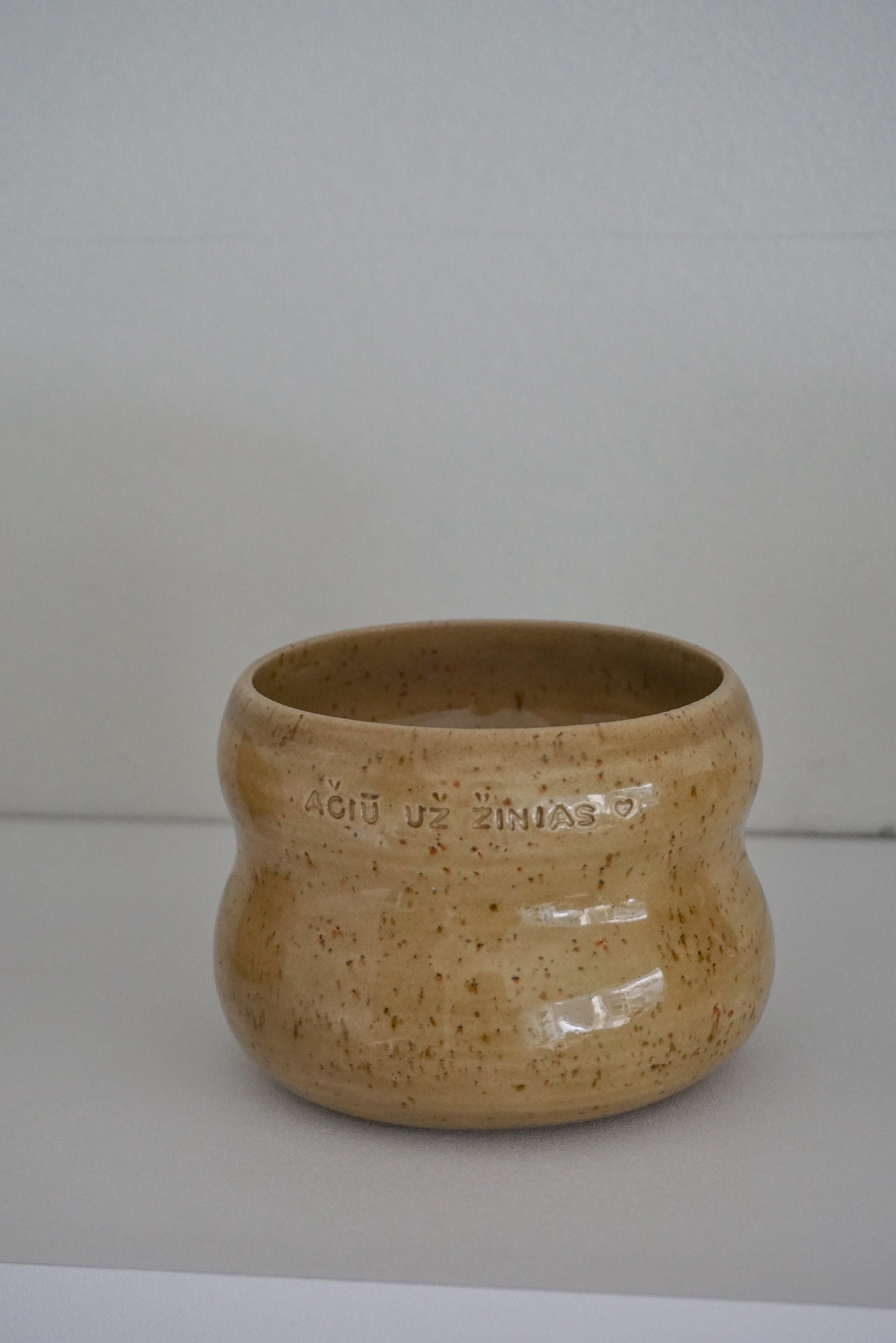Žiestas puodelis mokytojai ar mamai, tėčiui. Puodelis minimalistinio stiliaus, vidus ir išorė padengti smėline glazūra.
