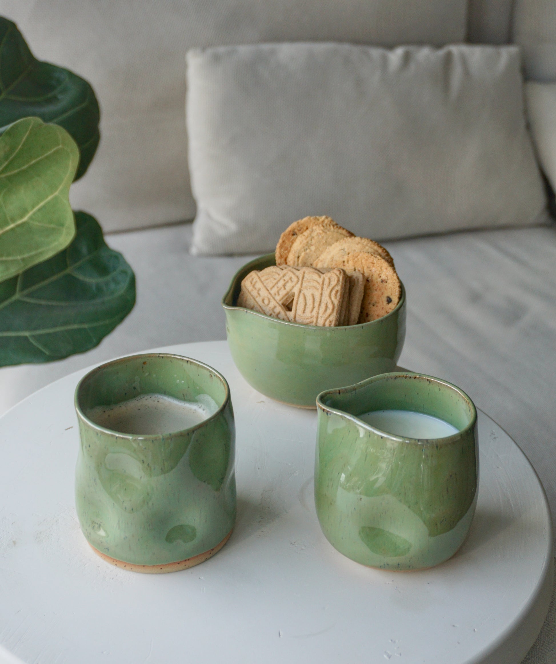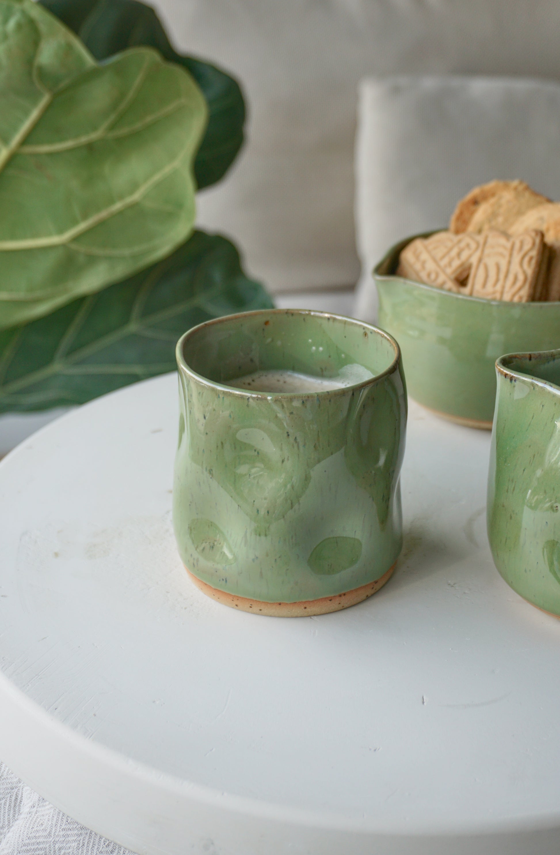 Tai žiestas puodelis, sodriai švelnios nefrito spalvos. Gaminiui sukurti naudotas aukšto degimo molis ir dėl šios priežasties galimas plovimas indaplovėje.