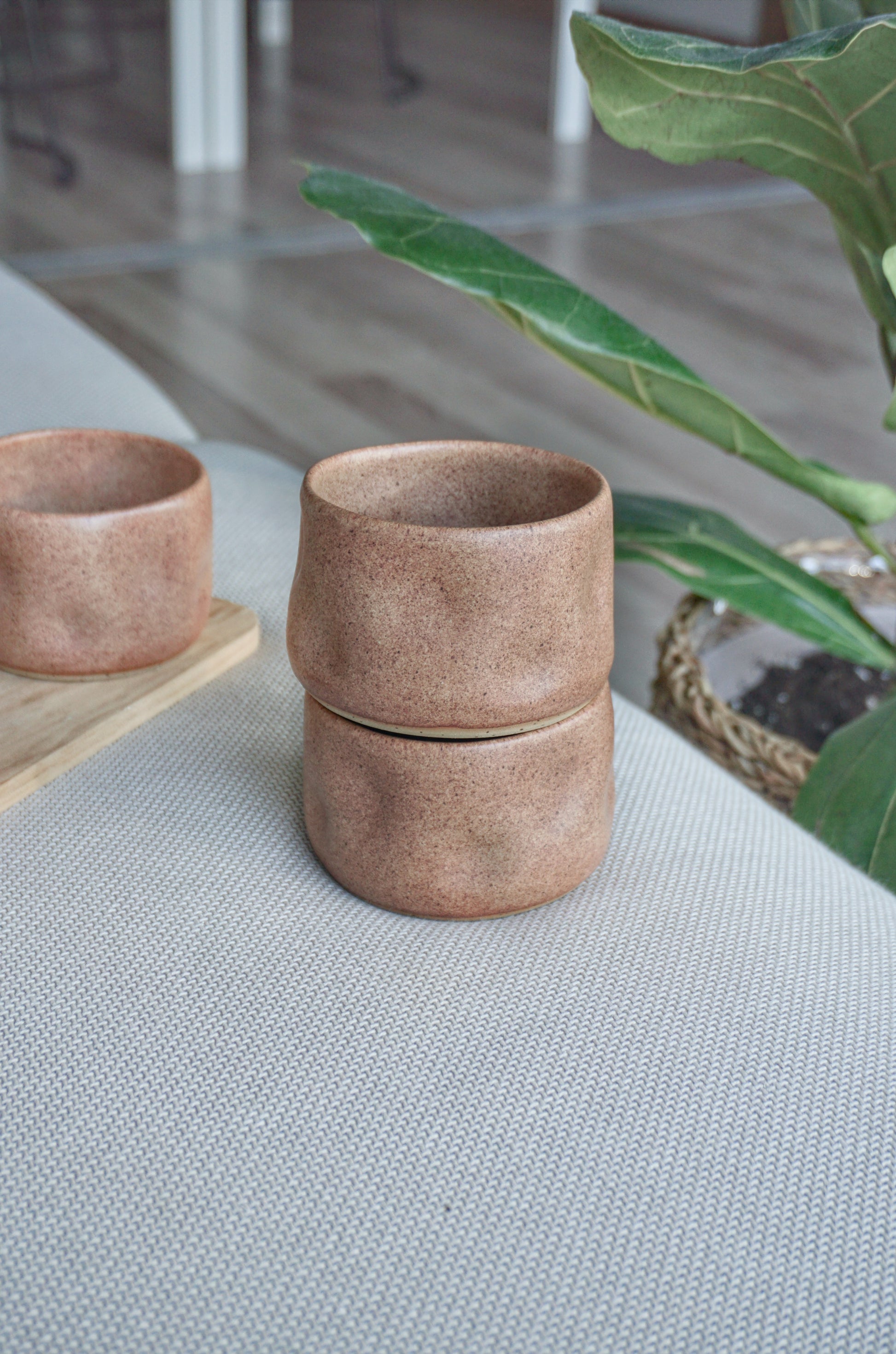 Tai žiestas puodelis, sodrios rudos granito spalvos. Gaminiui sukurti naudotas aukšto degimo molis ir dėl šios priežasties galimas plovimas indaplovėje.